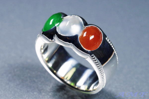 ダイヤ等を使用せず翡翠のみという内容のリングオーダーです。